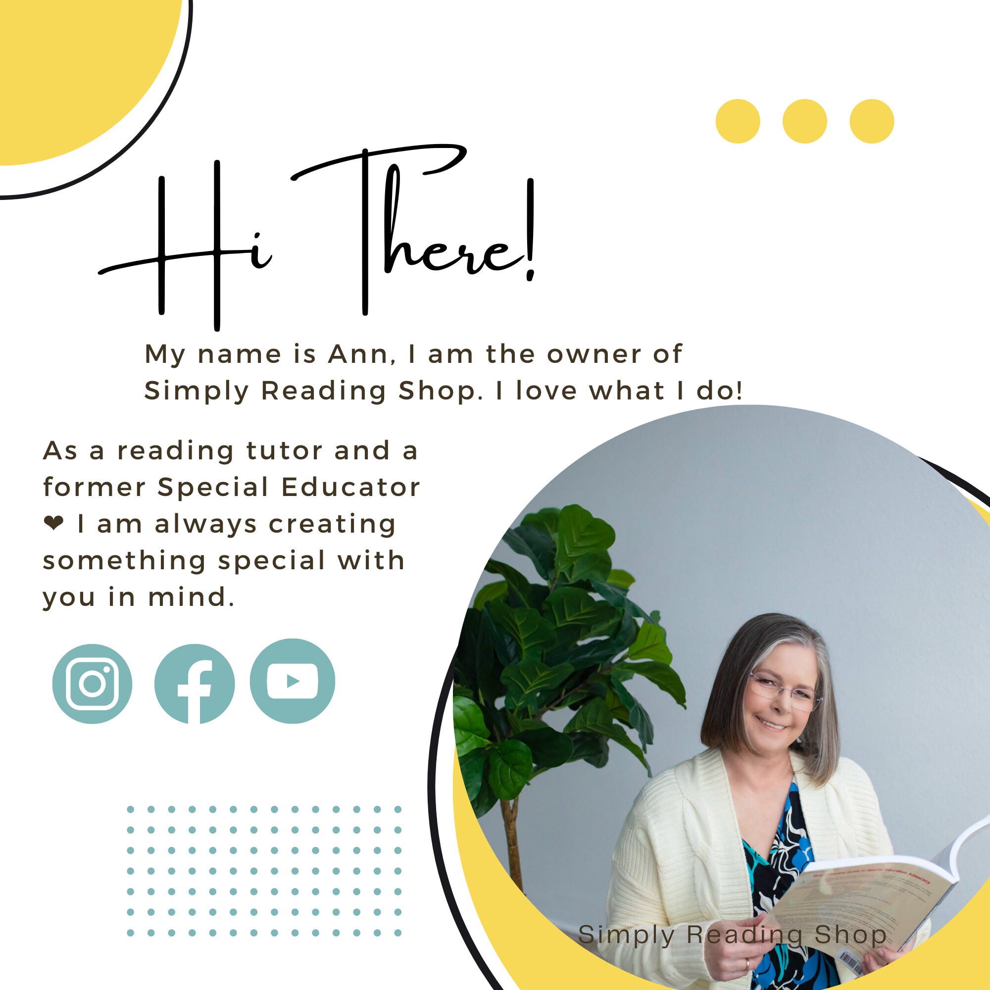Hey there! I'm Ann, an online reading tutor, an Etsy Shop owner, a mom, and a grandma!